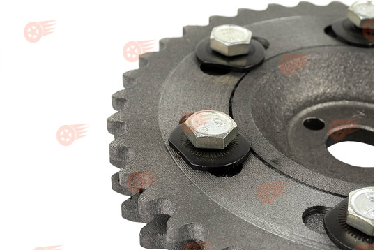 Разрезная или сдвижная шестерня газораспределительного механизма предназначена для передачи крутящего момента и одновременно возможности изменения относительного расположения коленчатого и распределительного валов без ослабления натяжения ремня. Этот нюанс позволяет обеспечить оптимальную работу двигателя, замедлив его износ и повысив мощность на 3-5%. Одновременно появляется возможность нивелировать допуски при изготовлении, которые могут находиться в пределах 10 градусов в каждую из сторон.
