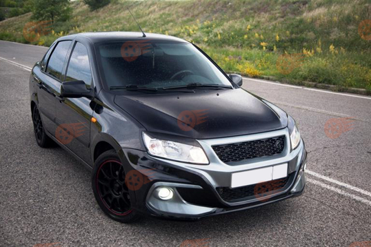 Передний бампер Razor изготовлен из ударопрочного, неструктурированного ABS-пластика методом термо-вакуумной формовки, поставляется с сетками, предназначен для тюнинга автомобилей Лада Гранта. Бампер отличается высокой износостойкостью и долговечностью, устойчивостью к агрессивным химическим и атмосферным воздействиям, а также имеет стильный дизайн, позволяющий преобразить экстерьер авто.