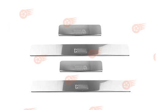 Комплект хромированных накладок выполнен с надписью KIA, предназначен для установки на внутренние пороги автомобилей KIA Mohave 2013 года выпуска. Накладки выполняют защитную функцию, оберегая лакокрасочное покрытие порогов от царапин и потертостей, а также станут стильными декоративными элементами, гармонично дополняя другие хромированные детали салона автомобиля. Установка производится на сухую, предварительно очищенную и обезжиренную поверхность при помощи двухстороннего скотча, уже нанесенного на оборотной стороне изделия.