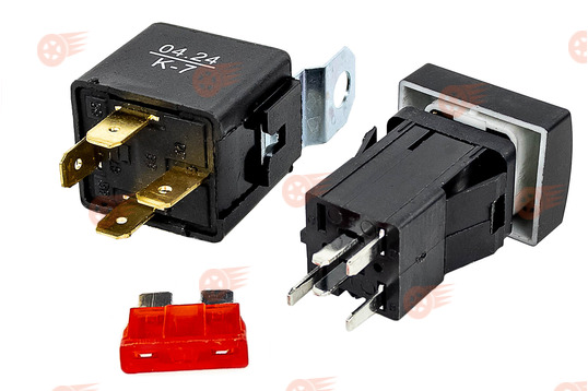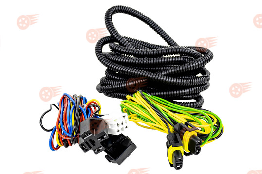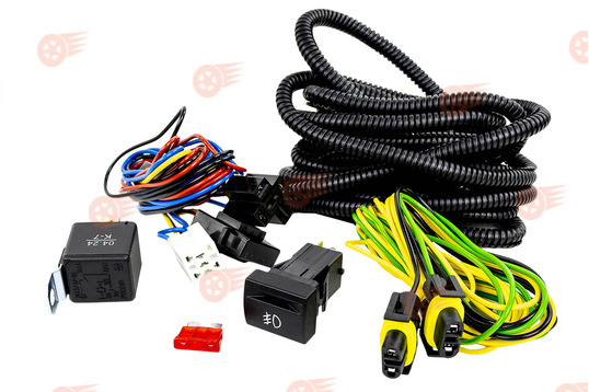 Комплект: 2 ПТФ, 1 реле, 1 кнопка, проводка, клипсы, предохранители
