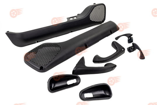 Комплект: 4 обивки, 2 ручки, 2 крючка, 2 облицовки ручек, 2 кармана