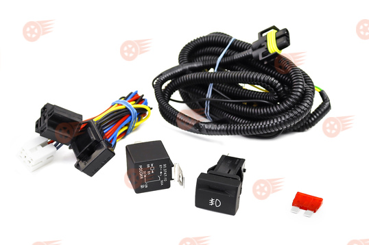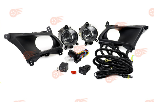Комплект: 2 ПТФ, 2 рамки, проводка, 1 кнопка, предохранитель, реле