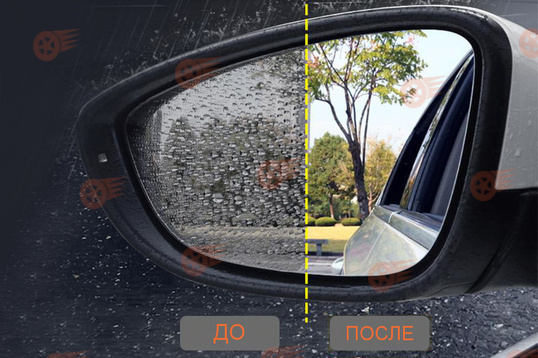 Водоотталкивающие накладки покрыты голубой защитной пленкой, которая удаляется после нанесения наклеек на зеркала.