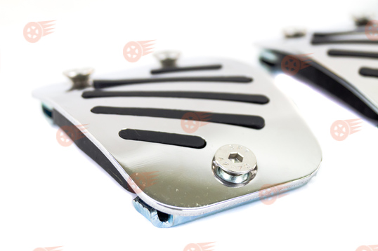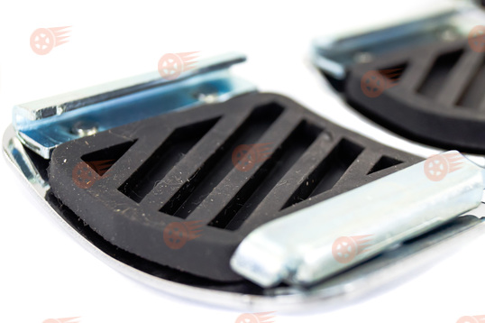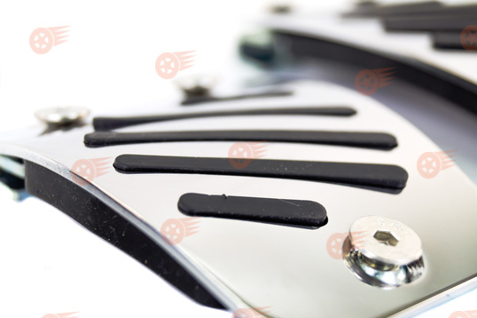 Накладки снабжены противоскользящими термополиуретановыми вставками, обеспечивающими удобство и безопасность использования. Накладки легко устанавливаются и надежно фиксируются на педалях без необходимости сверления и применения специальных инструментов, позволят освежит интерьер салона, придав ему стильные спортивные черты.