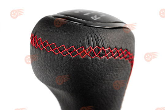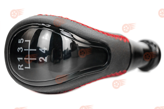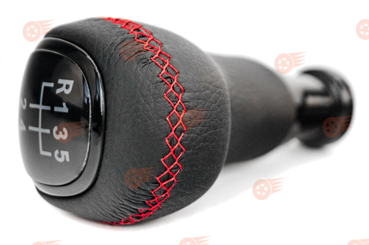 Ручка КПП в стиле Vesta с пыльником, черная вставка, экокожа, красная строчка Sal-Man на ВАЗ 2110-2112 с кулисой