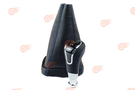 Ручка КПП в стиле Vesta с пыльником, синяя строчка, вставка хром Sal-Man на ВАЗ 2113-2115 с кулисой