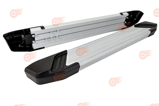 Комплект порогов Rival Silver изготовлен из алюминиевого профиля с алюминиевой площадкой, выполнен в серебристом цвете, предназначен для установки на автомобили Лада Нива 4х4 и Лада Нива Легенд в трехдверном типе кузова.