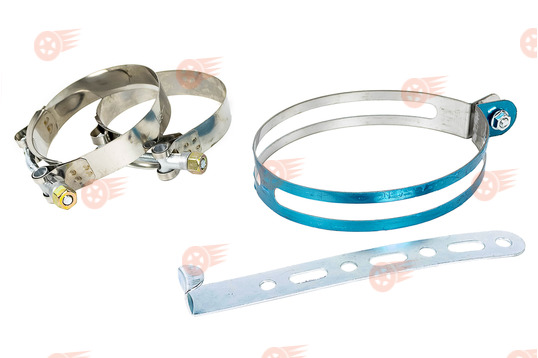 Комплект: 1 фильтр, 2 патрубка, 1 гофра, 3 хомута, кронштейн