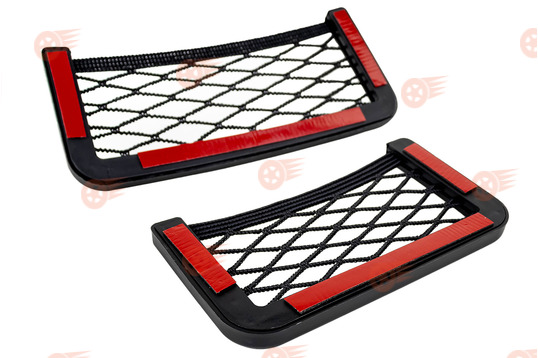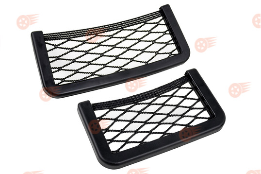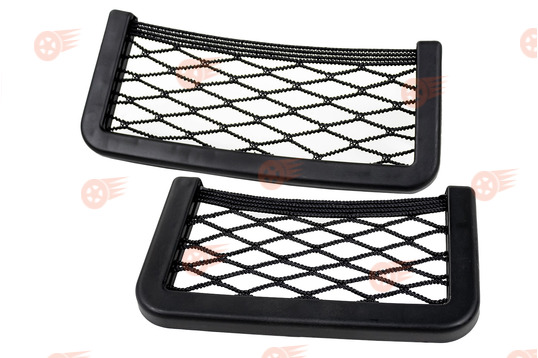 Комплект включает две универсальные сетки-кармана размерами 19х8 см и 15х8 см, предназначен для установки по бокам центрального тоннеля в салоне любого автомобиля. Сетки служат удобными органайзерами, позволяя складывать и хранить смартфоны, ключи и другие мелкие вещи, необходимые в пути. Установка производится на сухую, предварительно очищенную и обезжиренную поверхность при помощи двухстороннего скотча, уже нанесенного на оборотной стороне накладок.