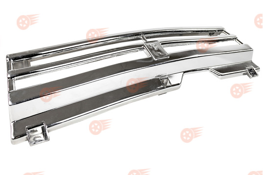 Решетка радиатора выполнена под шильдик старого образца, изготовлена из прочного пластика с металлизированным покрытием серебристого цвета, схожим по цвету с хромированным покрытием, предназначена для установки на автомобили Лада Самара первого поколения. Решетка легко устанавливается в штатные места крепления без каких-либо доработок. Благодаря своей форме решетка не препятствует воздушному потоку и не снижает эффективность охлаждения двигателя автомобиля, а также служит дополнительной защитой радиатора от мелких механических повреждений.