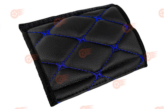 Универсальный чехол для рычага ручного тормоза изготовлен из качественной черной экокожи с декоративной прострочкой Ромб синего цвета, надежно фиксируется при помощи липучки velcro и резинки. Чехол подходит для ручки ручника практически любого автомобиля отечественного и зарубежного производства подходящего диаметра и длины. Чехол приятен на ощупь, позволит освежить интерьер автомобиля, а благодаря декоративной прострочке дополнит другие элементы салона в аналогичном цветовом исполнении.