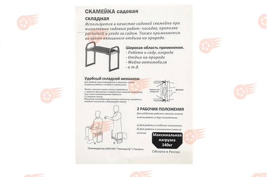 Универсальная скамейка-перевертыш станет удобным и полезным приобретением для любителей активного отдыха, туризма, рыбалки, садоводов и огородников, а также пригодится в любом гараже и домашнем хозяйстве. Скамейка имеет прочную конструкцию, выдерживает нагрузку до 140 кг, а благодаря надежному пружинному механизму компактно складывается для хранения и легко разбирается в рабочее положение. Дизайн скамейки-перевертыша позволяет использовать ее как удобное сиденье или в качестве опоры для ног в положении на коленях, например при работах в саду или ремонте автомобиля.