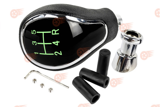 Ручка КПП в стиле Vesta хром, зеленая подсветка Sal-Man с пыльником на Лада Гранта, Гранта FL, Калина 2, Datsun с тросовым приводом