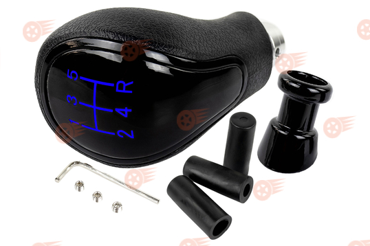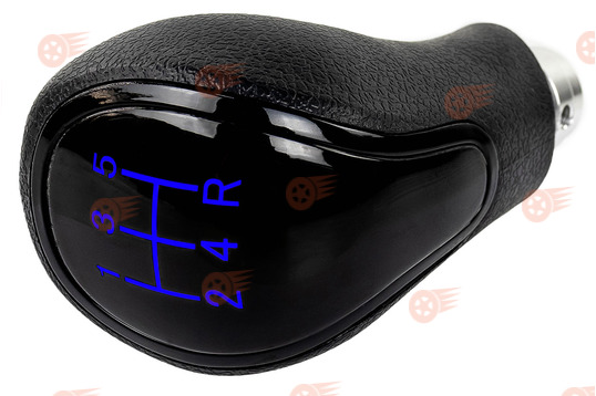 Ручка КПП черный лак, синяя подсветка Sal-Man с пыльником на Лада Гранта, Гранта FL, Калина 2, Datsun с тросовым приводом