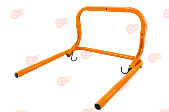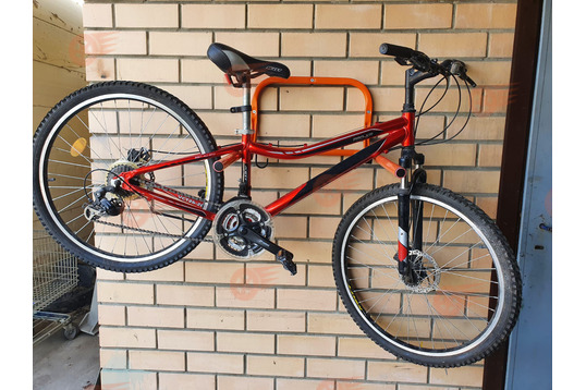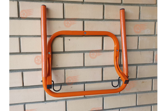 Прочный настенный кронштейн предназначен для удобного подвесного хранения двух велосипедов, может быть установлен на любой вертикальной поверхности: в квартире, гараже, на балконе или во дворе частного дома. Кронштейн изготовлен из стали в оранжевой полимерно-порошковой окраске, предотвращающей коррозию, снабжен пластиковыми заглушками на концах, имеет складную конструкцию, благодаря чему может компактно убираться к стене и легко раскладываться при необходимости. Установка производится при помощи трех шурупов, которые входят в комплект.