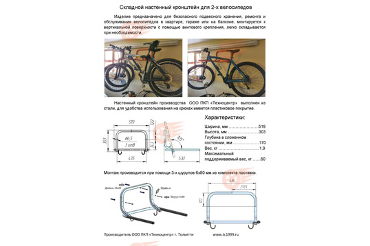 Универсальный кронштейн станет удобным и полезным приобретением для владельцев велосипедов, а также пригодится в любом гараже и домашнем хозяйстве, может применяться не только для хранения, но и при ремонте и обслуживании велосипедов, облегчая доступ к ним, а также, при установке перекладины, использоваться в качестве удобной полки.