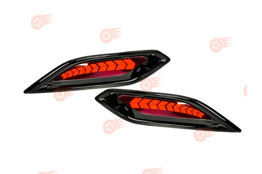 Функциональные катафоты имеют три режима работы: постоянное свечение (габарит), бегающий режим поворотника и стоп-сигнал, устанавливаются взамен штатных вставок бампера, имитирующих двойной выхлоп. Яркие диодные катафоты со стильным рисунком дополнят внешний вид автомобиля, а также позволят быть заметнее на дороге, повышая тем самым безопасность движения.