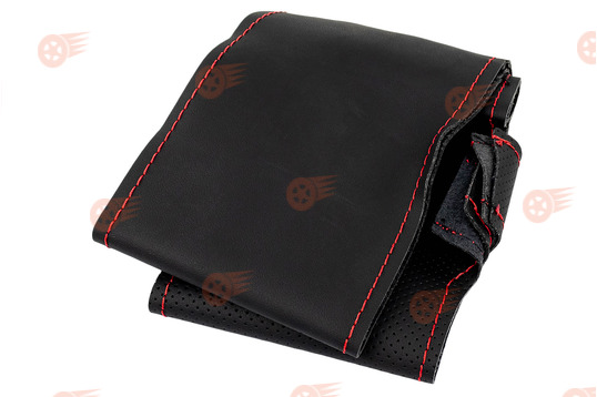 Оплетка руля без подушки безопасности с повторением анатомической формы, кожа, красная строчка Sal-Man на Лада Калина, Шевроле Нива