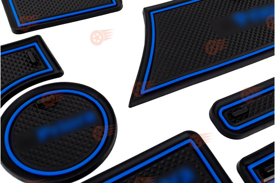 Комплект черно-синих силиконовых ковриков панели приборов и консоли на Лада Приора 2 2013-2018 г.в.