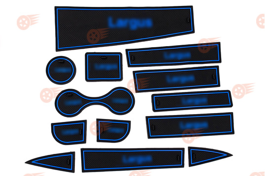Комплект включает 13 противоскользящих ковриков для панели приборов и центральной консоли автомобилей Лада Ларгус. Коврики изготовлены из высококачественного силикона, выполнены в черном цвете с синими окантовками и надписями, точно повторяют форму ниш. Коврики препятствуют соскальзыванию расположенных на них мелких предметов и устраняют их дребезжание. Также коврики защищают поверхности приборной панели и консоли от пыли и влаги и облегчают процесс уборки. Стильный и практичный комплект ковриков освежит интерьер автомобиля и поможет поддерживать салон в чистоте.