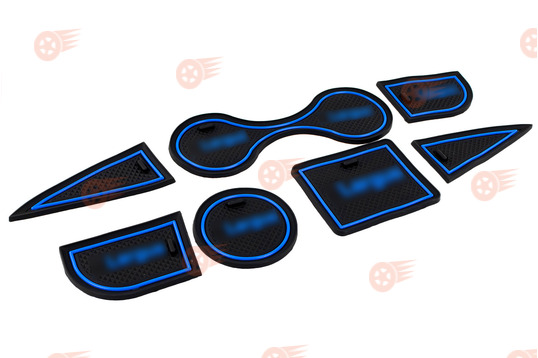 Комплект черно-синих силиконовых ковриков панели приборов и консоли на Лада Ларгус