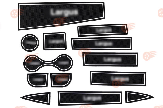 Комплект включает 13 противоскользящих ковриков для панели приборов и центральной консоли автомобилей Лада Ларгус. Коврики изготовлены из высококачественного силикона, выполнены в черном цвете с белыми окантовками и надписями, точно повторяют форму ниш. Коврики препятствуют соскальзыванию расположенных на них мелких предметов и устраняют их дребезжание. Также коврики защищают поверхности приборной панели и консоли от пыли и влаги и облегчают процесс уборки. Стильный и практичный комплект ковриков освежит интерьер автомобиля и поможет поддерживать салон в чистоте.
