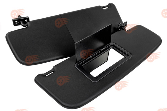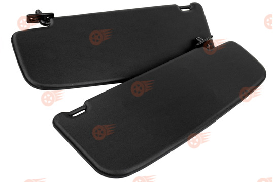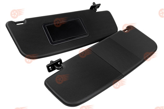 Комплект козырьков выполнен в черном цвете с обеих сторон, снабжен зеркалом с откидывающейся крышкой на пассажирском козырьке, поставляется с крепежом, предназначен для штатной установки на автомобили Лада Калина первого поколения. Козырьки оснащены стандартными заводскими креплениями, функционируют в двух режимах: стандартное открытие сверху вниз, а также откидывание в боковую сторону в горизонтальной плоскости путем отсоединения их с крючка во внутренней части.