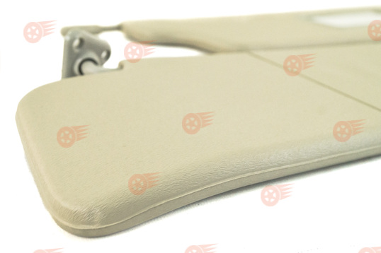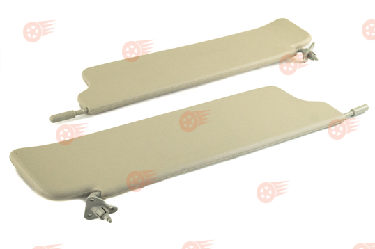 Комплект солнцезащитных козырьков выполнен в серо-бежевом цвете с обеих сторон, оснащен зеркалом на пассажирском козырьке, поставляется с центральным кронштейном. Козырьки функционируют в двух режимах: стандартное открытие сверху вниз, а также откидывание в боковую сторону в горизонтальной плоскости путем отсоединения их с крючка во внутренней части.