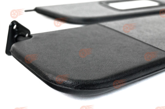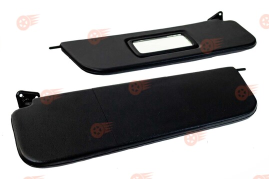 Комплект козырьков выполнен в черном цвете с обеих сторон, снабжен зеркалом на пассажирском козырьке, поставляется с черными саморезами для крепления, предназначен для установки на автомобили Лада классического семейства. Козырьки функционируют в двух режимах: стандартное открытие сверху вниз, а также откидывание в боковую сторону в горизонтальной плоскости путем отсоединения их с крючка во внутренней части.