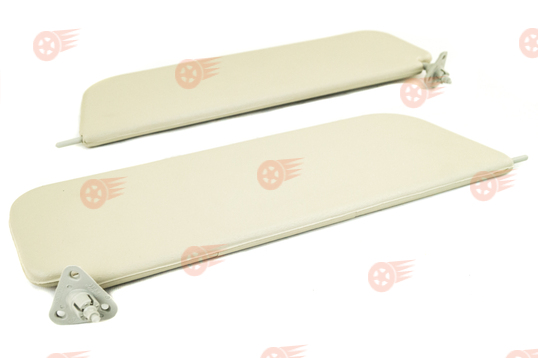 Комплект козырьков выполнен в серо-бежевом цвете с обеих сторон, снабжен зеркалом на пассажирском козырьке, поставляется с саморезами для крепления, предназначен для установки на автомобили Лада классического семейства. Козырьки функционируют в двух режимах: стандартное открытие сверху вниз, а также откидывание в боковую сторону в горизонтальной плоскости путем отсоединения их с крючка во внутренней части.