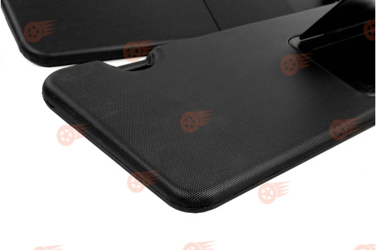 Комплект включает два козырька и набор черных саморезов для крепления, предназначен для установки на автомобили Лада Приора первого и второго поколения. Козырьки выполнены в черном цвете с обеих сторон, снабжены зеркалом с откидной крышкой на пассажирском козырьке. Козырьки функционируют в двух режимах: стандартное открытие сверху вниз, а также откидывание в боковую сторону в горизонтальной плоскости путем отсоединения их с крючка во внутренней части.