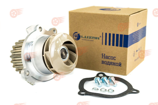 Комплект отличается высоким качеством исполнения и обеспечивает надежную работу в течение длительного времени. Серия Magnum отличается использованием полностью стальных роликов, применением в конструкции опорного ролика двухрядного подшипника. Стальная обойма ролика обеспечивает более эффективное рассеивание тепла, максимально точную геометрию, благодаря чему полностью исключаются биение и пульсации в пятне контакта ремня и ролика. Водяной насос Luzar Turbo поставляется с прокладкой, снабжен металлической крыльчаткой усовершенствованной формы, за счет чего имеет повышенную на 15-20% производительность по сравнению со стандартными помпами.
