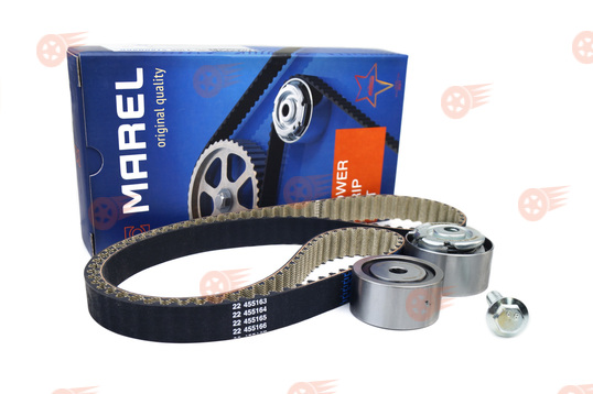 Комплект Marel Kit Sport отличается использованием полностью стальных роликов и применением в конструкции опорного ролика двухрядного подшипника. Стальная обойма ролика обеспечивает более эффективное рассеивание тепла, максимально точную геометрию, благодаря чему полностью исключаются биение и пульсации в пятне контакта ремня и ролика. Водяной насос Luzar Turbo поставляется с прокладкой, снабжен металлической крыльчаткой усовершенствованной формы, за счет чего имеет повышенную на 15-20% производительность по сравнению со стандартными помпами.