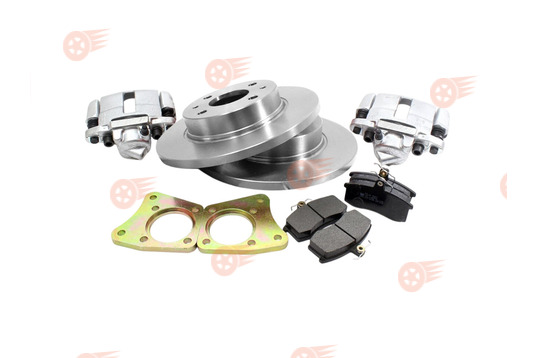 Комплект: 2 суппорта, 2 диска, 2 переходные пластины, 4 колодки