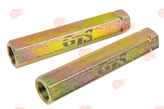 Комплект цельных рулевых скруток GTS длиной 120 мм изготовлены из высококачественной стали, применяются для регулировки схождения на автомобилях Лада классического семейства при установке укороченных сошек или в случае недостаточной длины стандартных рулевых сгонов при установке дрифт рычагов. Скрутки также позволяют легко провести регулировку схождения без использования дополнительных инструментов.