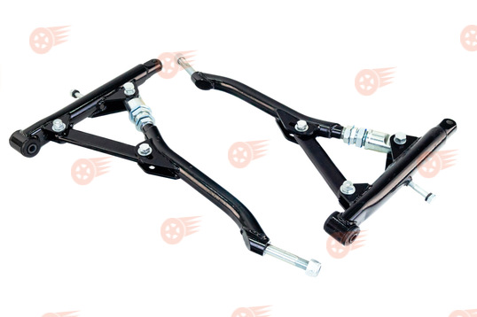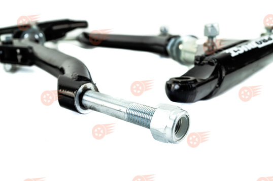 Регулируемые рычаги изготовлены из высококачественного металла с резиновыми сайлентблоками, имеют увеличенную жесткость, позволяют увеличить кастор до 4° 40", базы до 30 мм, а также оперативно настроить кастор с целью улучшения управляемости. Установка данных рычагов рекомендуется на спортивных и тюнинговых автомобилях.
