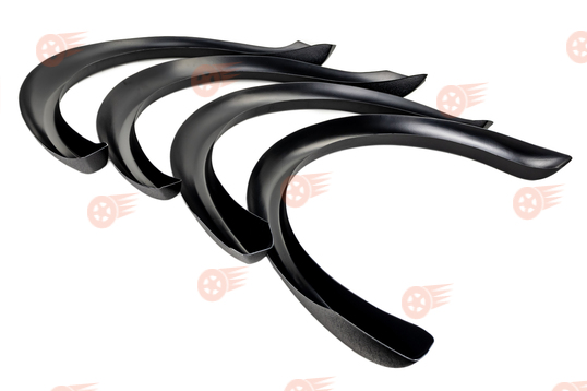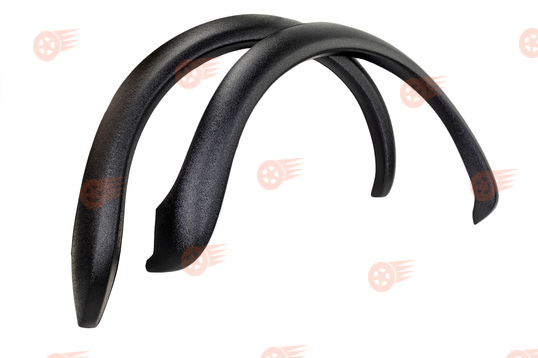 Комплект накладок изготовлен из ударопрочного черного ABS-пластика, предназначен для установки на арки колес автомобилей Лада Нива 4х4. Накладки служат в качестве декоративных элементов внешнего тюнинга, а также для дополнительной защитой боковой части кузова от грязи, вылетающей из под колес.