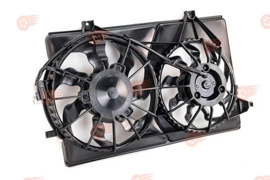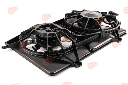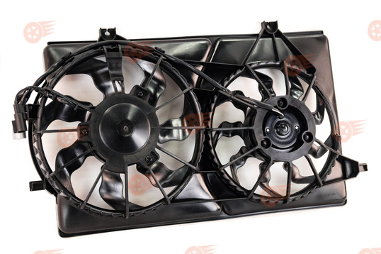 Комплект сдвоенных электровентиляторов с диффузором на радиатор охлаждения и радиатор кондиционера, на автомобили семейства Лада Приора, оснащённых системой кондиционирования фирмы Halla (Южная Корея).